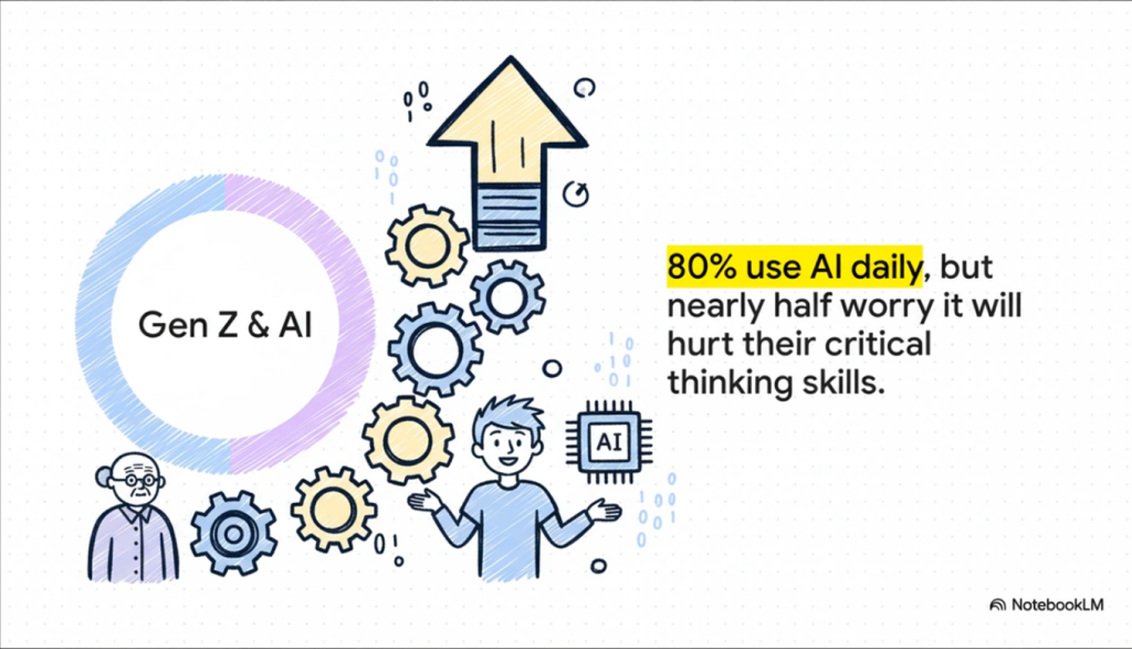 While Gen Z has grown up in a digital-first world, this fluency doesn’t automatically confer AI competency. An EY survey found that young professionals often overestimate their AI literacy, a gap that has tangible consequences. Research from Aithor shows that while nearly 80% of Gen Z professionals use AI for over half of their work tasks, many lack the critical skills to evaluate its output.